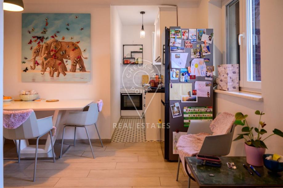 Ukoliko ste u potražnji stana sa osječajem življenja u kući tada je ovaj stan prava prilika za Vas. Pregršt zelenila, veliko dvorište za boravak i druženja vani čine ovaj stan izuzetno ugodnim.
