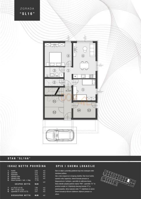 Pojedinim stambenim jedinicama osim parkirnog mjesta pripadaju i spremišta koja su locirana u prizemljima građevina te njih također nije moguće mijenjati ili izostaviti iz sastava stambene jedinice.