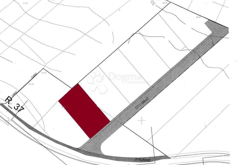 Građevinska parcela pravokutnog oblika na rubnom dijelu naselja.