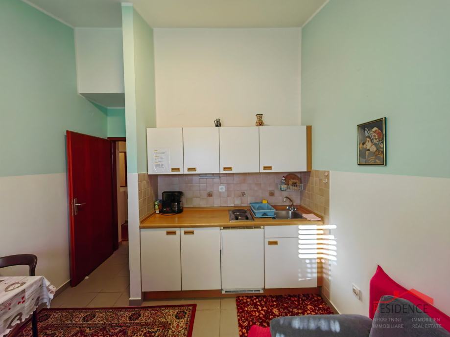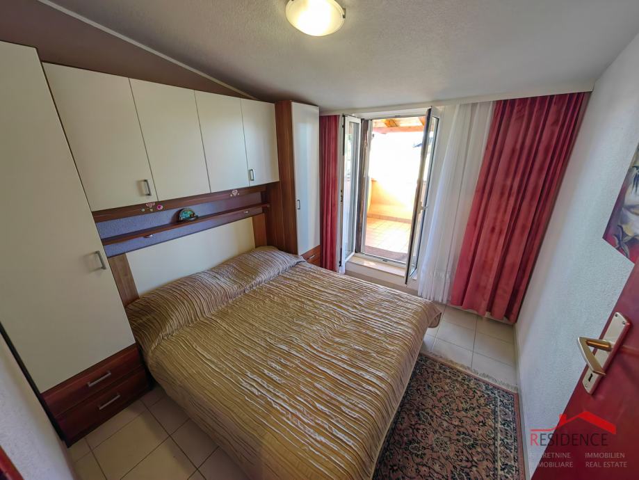 Na prvom katu se nalaze tri dvosobna apartmana. Dva apartmana imaju velike terase s pogledom na more dok treći ima terasu orijentiranu na drugu stranu. Kuća se prodaje kompletno namještena
