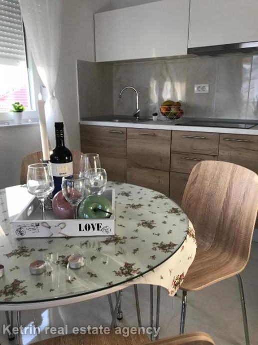 Two bedroom apartment, situated on the third floor, residential building. Apartment consist of: 2 bedrooms, living room, kitchen with dining room and bathroom. Apartment is fully furnished and equipped with all needed devices.