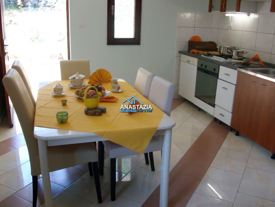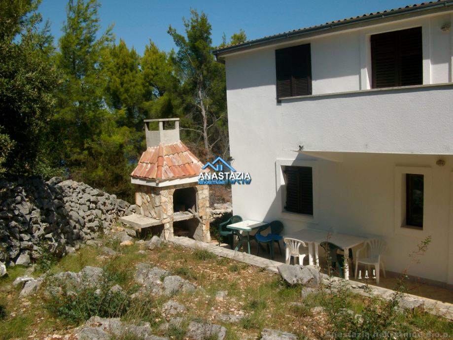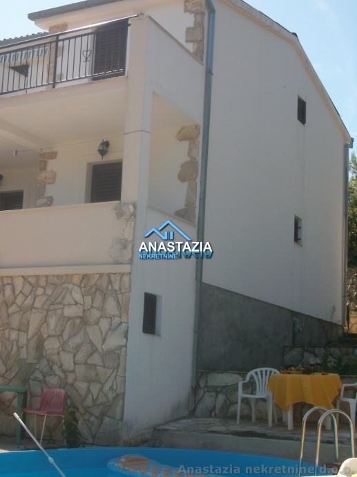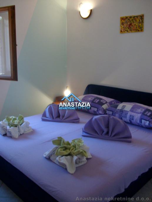 Kuća se sastoji od suterena kao studio apartman te prizemlja i kata s dva stana dvosobna komforna stana i svaki sa prostranom terasom i pogledom na more sveukupne stambene površine 180m2. Ukupna površina okućnice iznosi 354m2 .Kuća je udaljena od plaže 300m