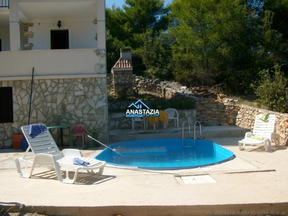Stomorska na otoku Šolti samostojeća kuća s bazenom u mirnom dijelu mjesta s pogledom na more