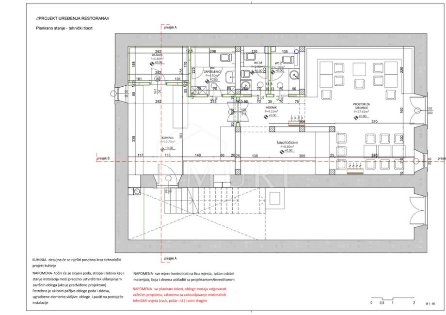 Prostor je potpuno adaptiran, opremljen krušnom peći i ventilacijskim sustavom te zadovoljava sve Minimalne tehničke uvjete za restoran. Odmah je spreman za preuzimanje i pokretanje posla.