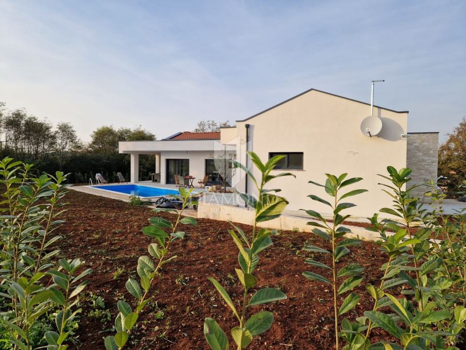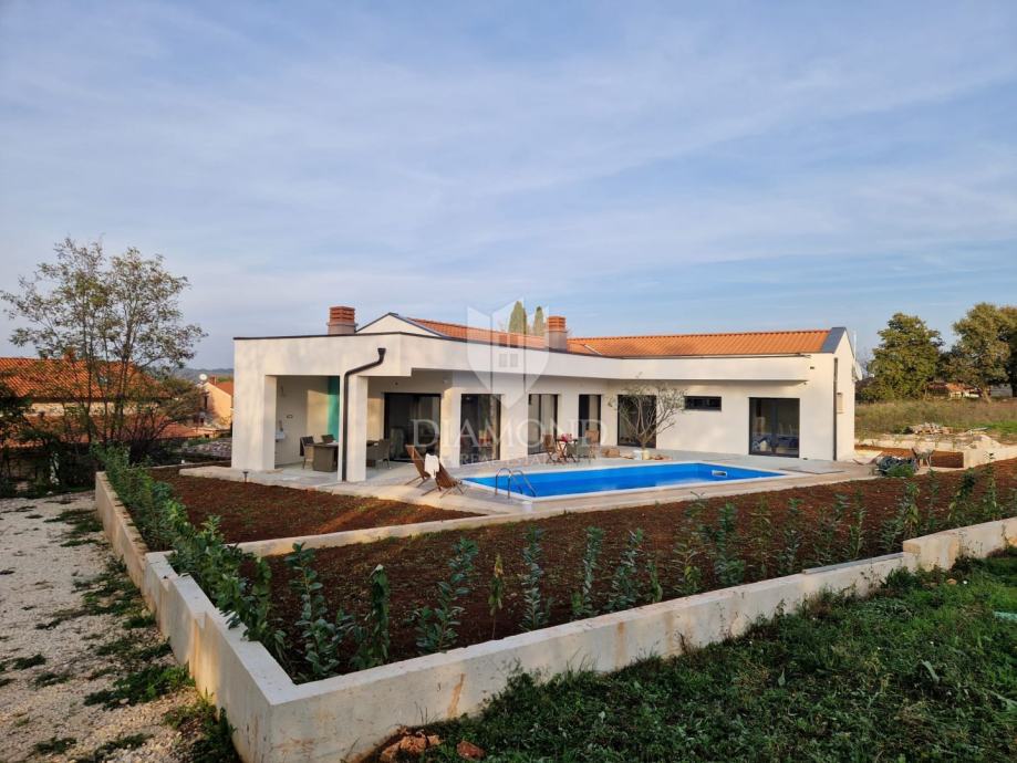 Ova luksuzna i moderna prizemnica smještena je u blizini Rovinja, na idealnoj lokaciji koja pruža privatnost i mir, a istovremeno je samo desetak minuta vožnje od samog centra Rovinja. Izgrađena 2023. godine, ova nova nekretnina nudi vrhunski dizajn, pažljivo odabrane materijale i funkcionalnost.