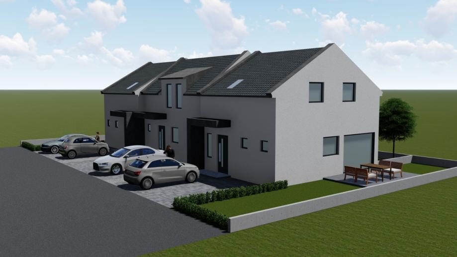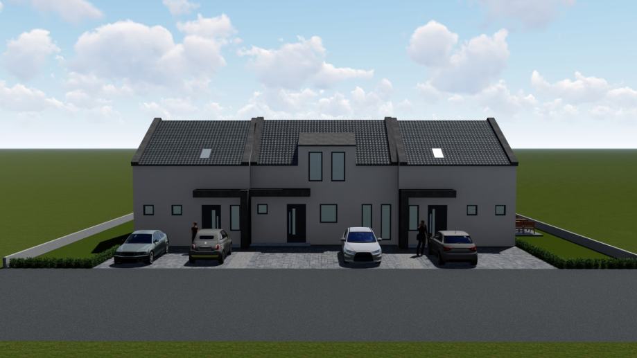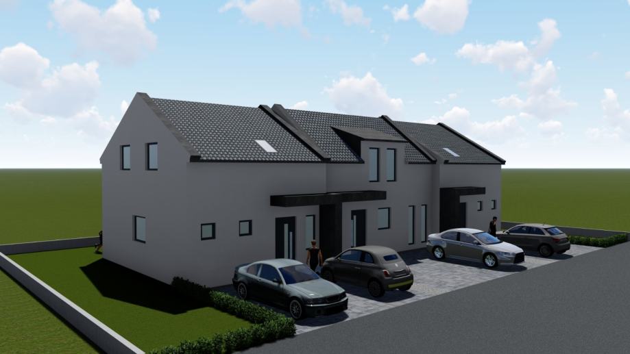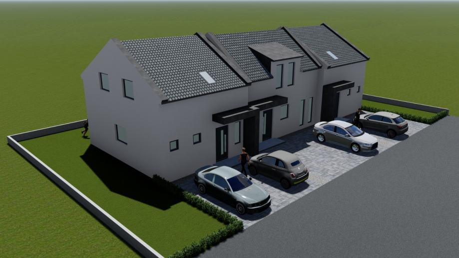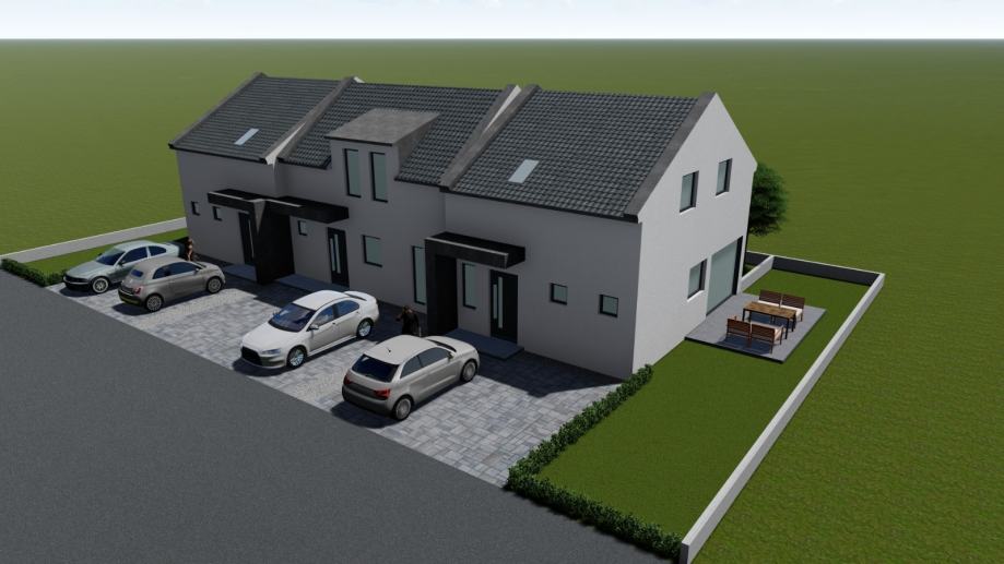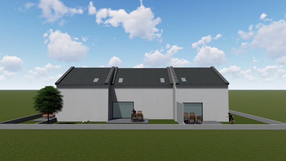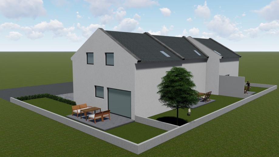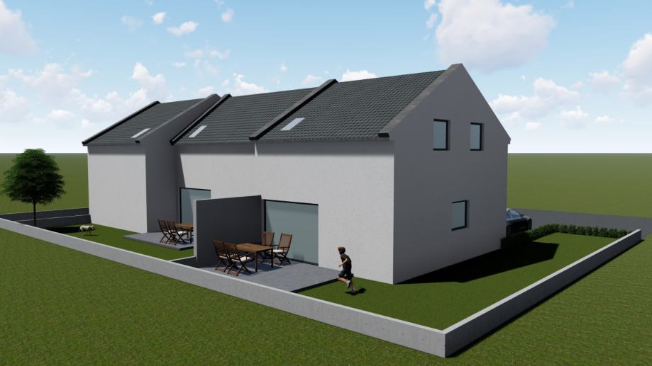 5. Grubi građevinski radovi (temelji, temeljne grede, donja betonska ploča, hidroizolacija ispod zidova, zidanje svih nosivi i pregradnih zidova, izrada fert stropa, izrada armiranobetonskih stepenica, izrada armiranobetonske hemplate, izrada kompletnog krovišta, 2 krovna prozora, terasa, vanjske klupčice, bočno ograda i opločnici).