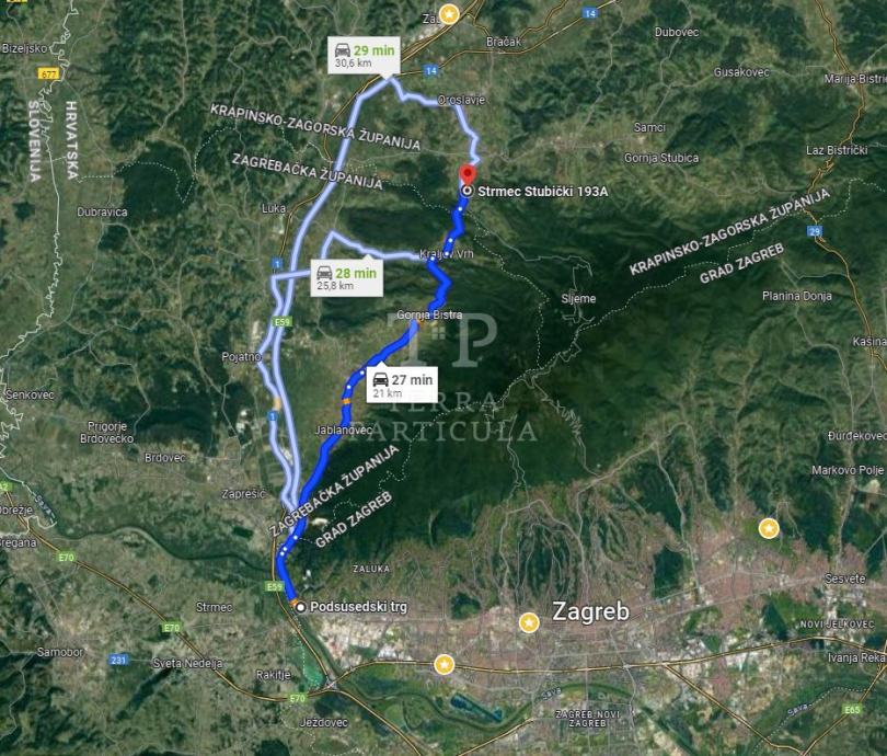 Na prodaju je zemljište površine 4.453 m² od kojeg je cca 3.600 m² u zoni gradnje. Nalazi se iza kuće na adresi Strmec Stubički 165 (cca 100 m odo glavne ceste s desne strane). Sva infrastruktura je uz najbližu kuću. Udaljenost do centra Stubičkih Toplica je 2,4 km.