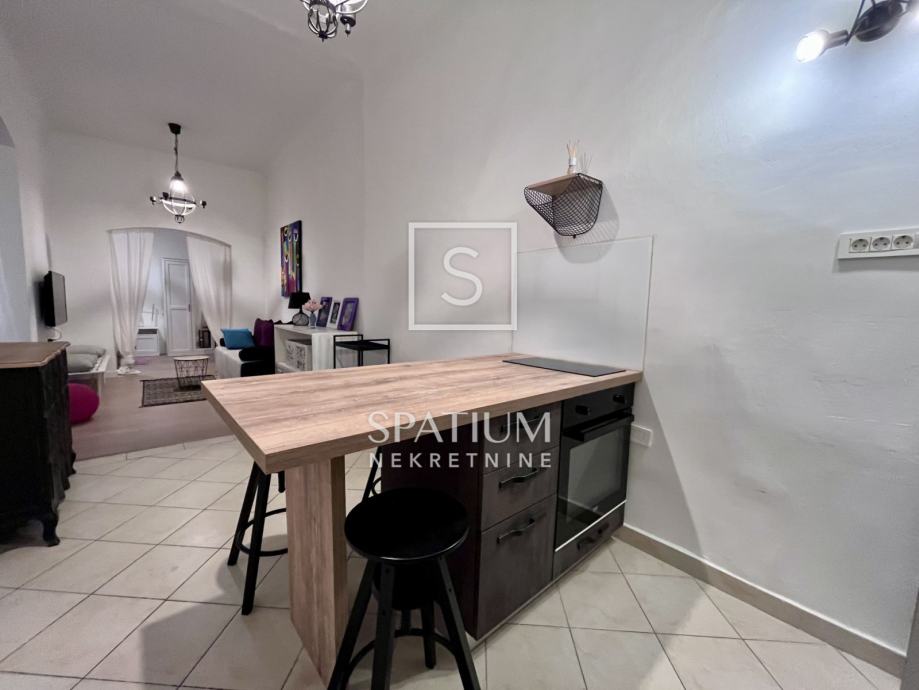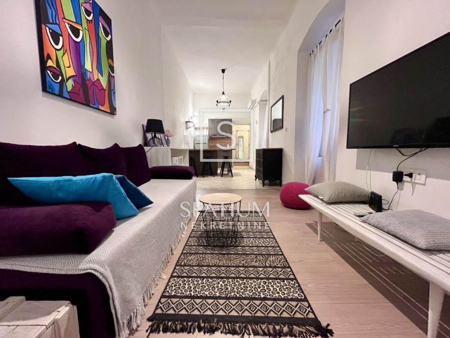 RIJEKA, CENTAR, u ponudi je stan za najam, udaljen par koraka od Korza. Smješten na drugom katu zgrade, površine 51m2, sastoji se od ulaznog hodnika, kupaonice, spavaće sobe i dnevnog boravka povezanog s kuhinjom. Stan je kompletno uređen, namješten i opremljen svim kućanskim aparatima. Obzirom na lokaciju stana, idealan je za poslovne ljude, kao i samce ili parove. Kućni ljubimci su dozvoljeni, dugoročni najam.
