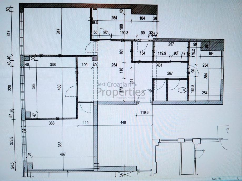 Stan (ured) se sastoji od ulaznog hola, 3 sobe, kuhinje,kupaonice, toaleta.