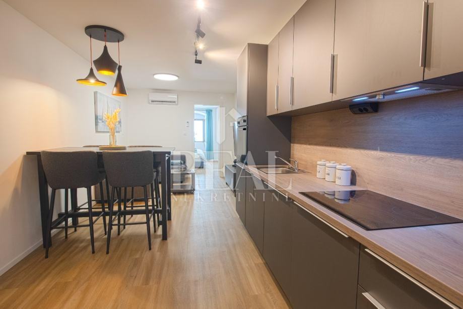 U ponudu smo dobili odličan stan za investiciju najma. Naime praktično na samom Korzu se prodaje stan od 93, 50 m2, podijeljen u dva apartmana koji su formom 1S+DB. Izvršena je kompletna adaptacija prostora od instalacija pa na dalje. Sav prostor je klimatiziran, a u kupaoni provedeno podno grijanje. Kompletno novi nekorišteni namještaj! Apartmani su opremljeni apsolutno svim potrebnim za turističko iznajmljivanje. Imajući u vidu da svaki apartman ima 46 m2 , formom je 1S+DB,u potpunosti je kvalitetno renoviran, kompletno namješten i opremljen, a cijena kvadrata mu je cca 3300€/m2, onda zaista možemo reći da je riječ o nekretnini vrijednoj pažnje!