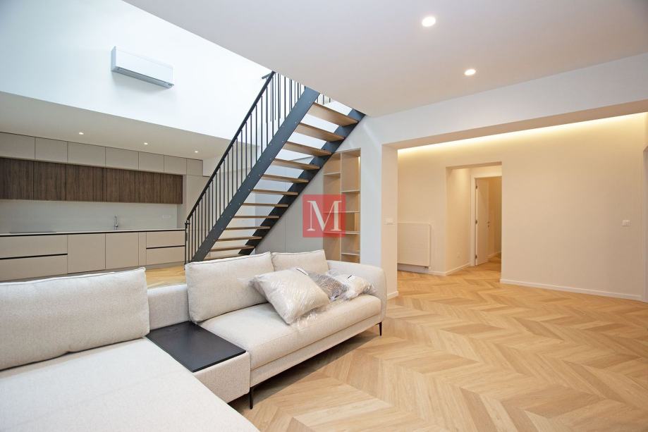 Prekrasan, novouređen dizajnerski 4s duplex od 150 m2 na 3.katu odlične, obnovljene stambene zgrade sa liftom, u strogom centru Zagreba.