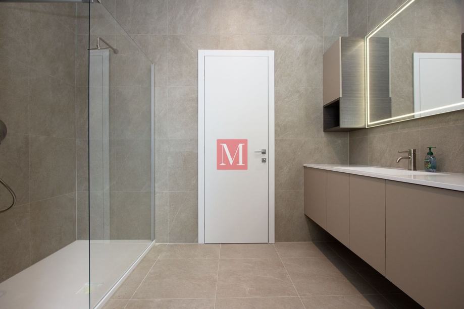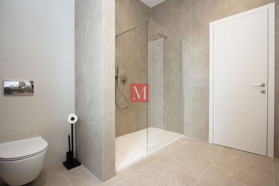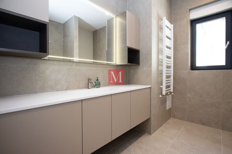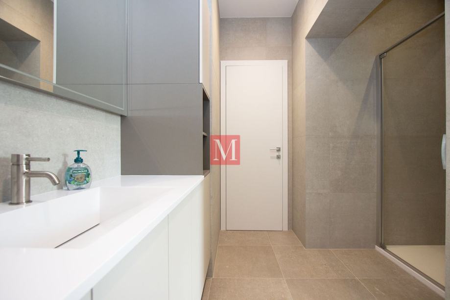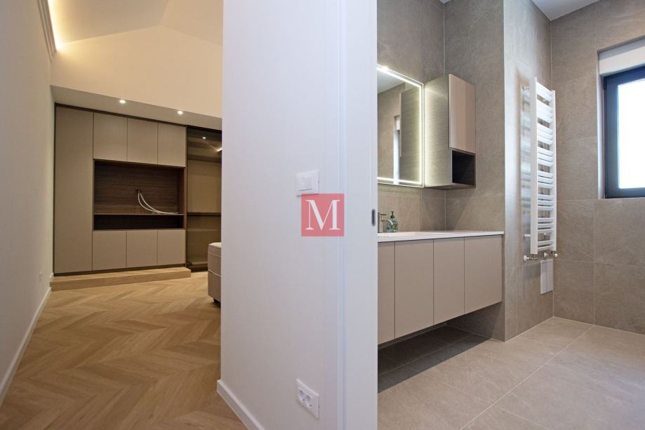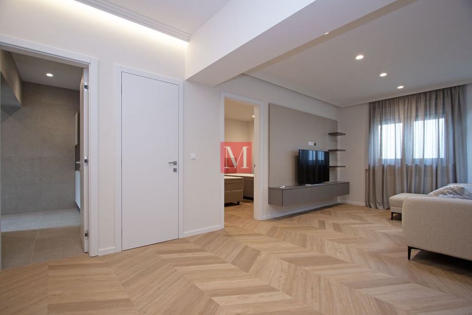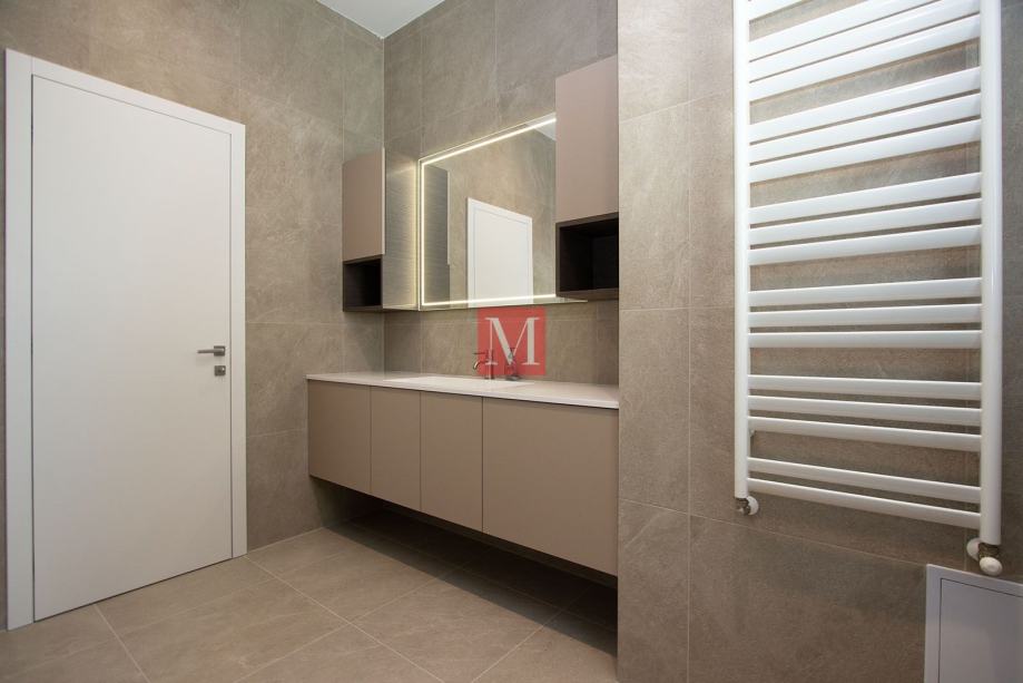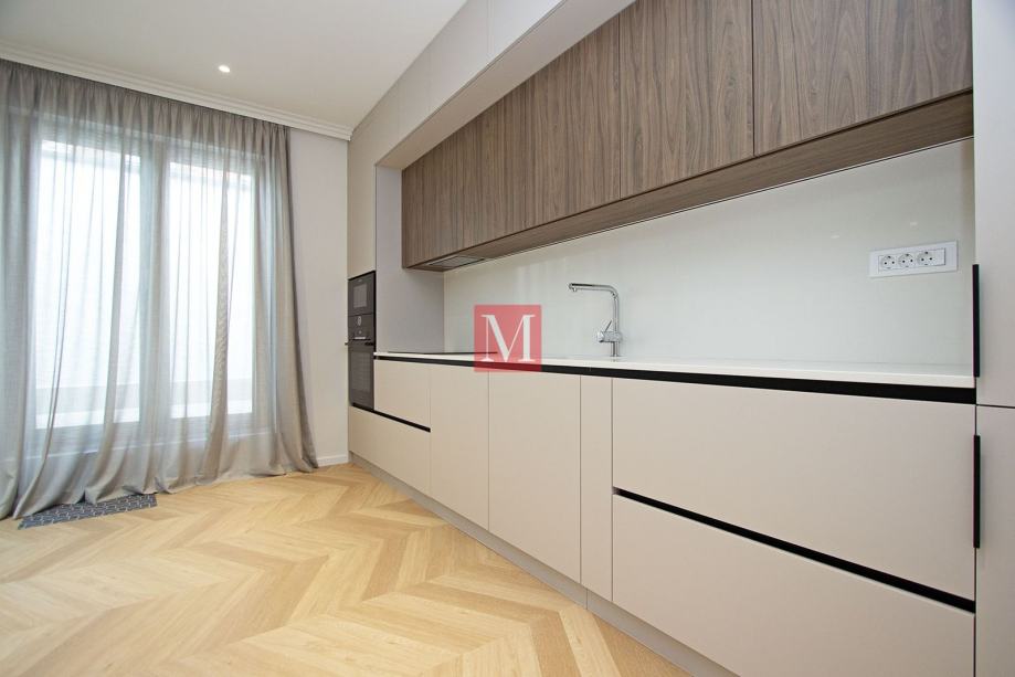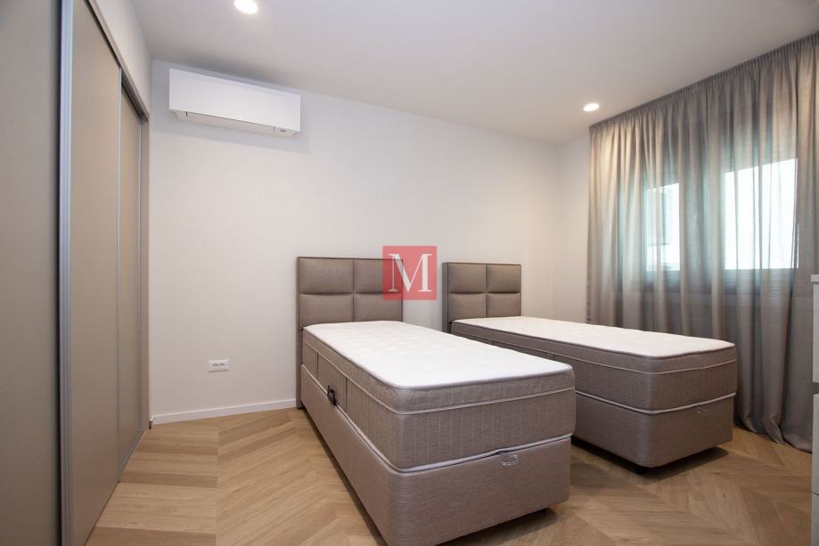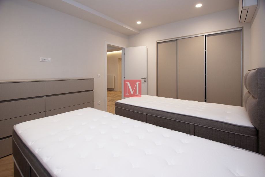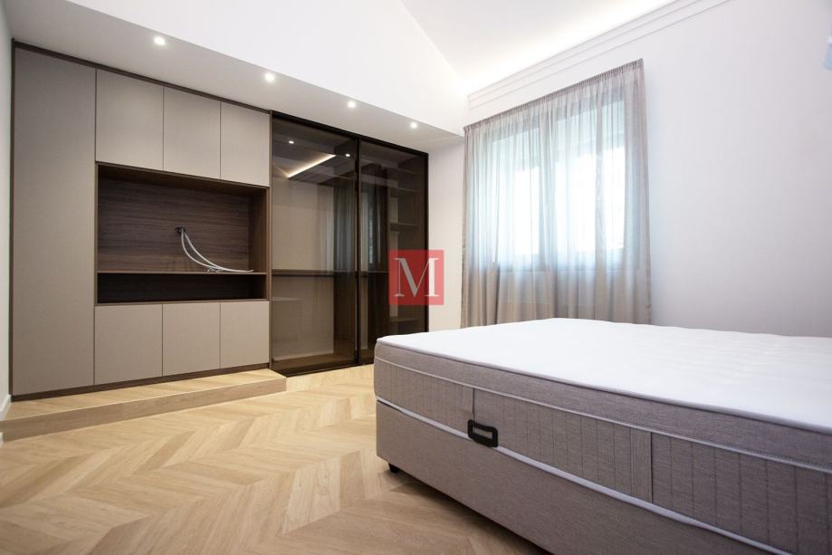 Stan je u potpunosti namješten dizajnerskim namještajem i opremljen svim kućanskim aparatima (Bosch), ugradbenim ormarima, klima jedinicama. Mogućnost najma parkirnog mjesta u garaži Cvjetni.