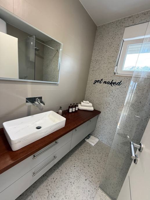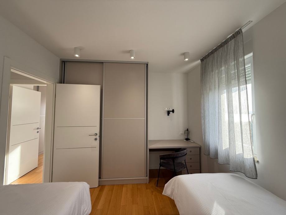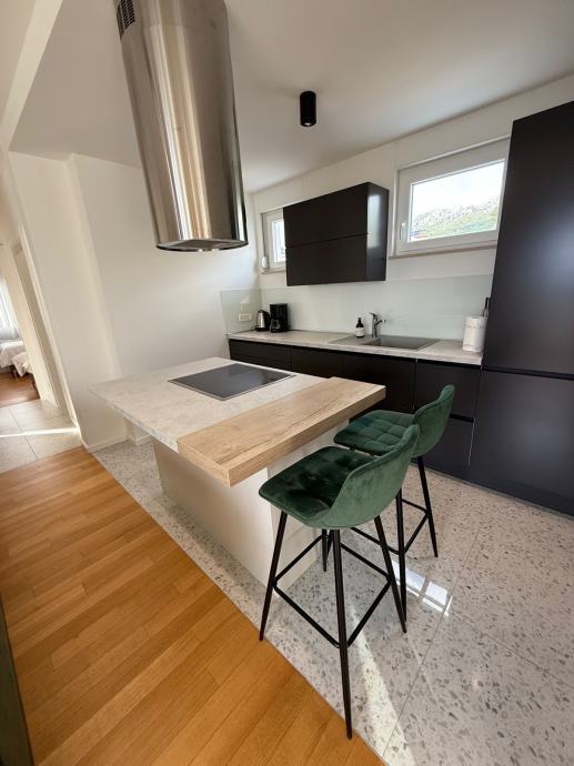 Pogled na more iz stana je zaista poseban, panorama plavetnila i zelenila što pruža užitak življenja u njemu. Sastoji se od dvije spavaće sobe, dva sanitarna čvora, kuhinje i dnevnog dijela sa izlazom na divan balkon sa panoramskim pogledom na more i otoke.
