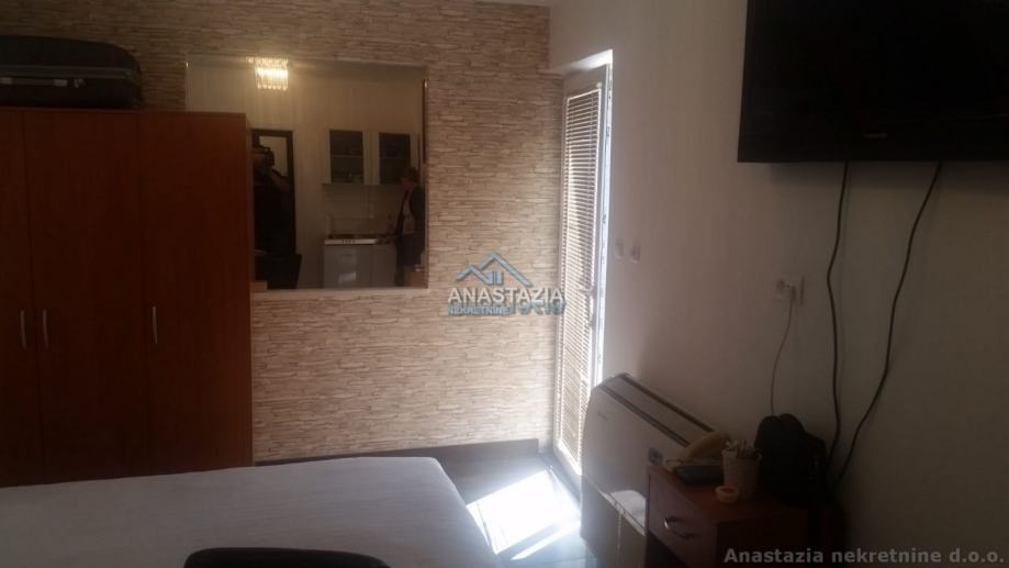 STROŽANAC-garsonjera namješten (spavači dio sa kuhinjom i trpezarijom i wc) klima,perilica rublja,priključak za internet.