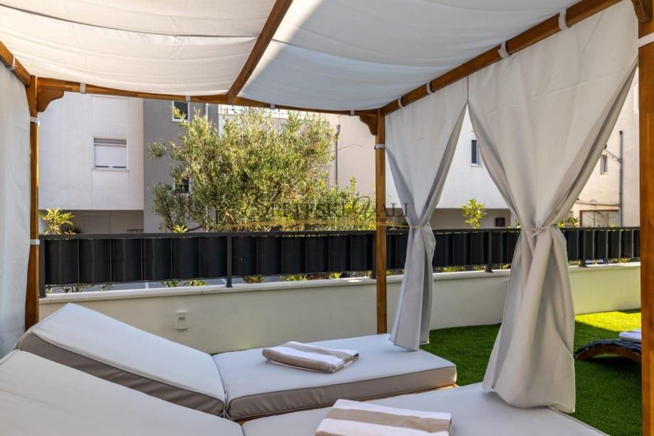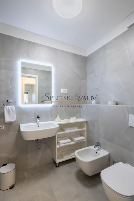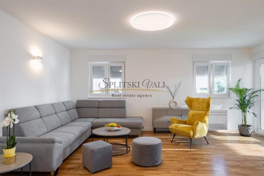 Posredujemo u najmu Luksuznog stana u Strožancu, površine 100m2 s vrtom te dva garažna i jednim vanjskim parkirnim mjestom.