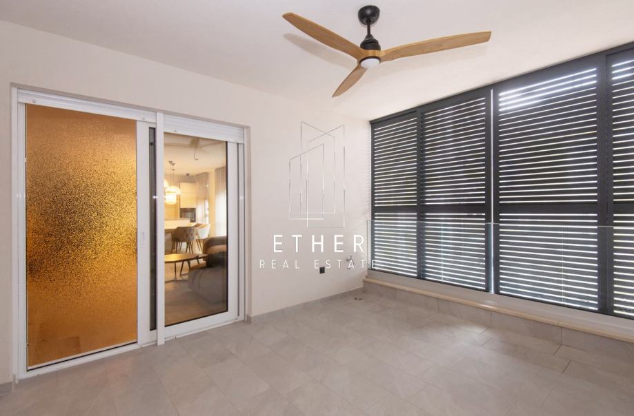 The apartment has an outdoor parking space of 11,50 m2, a garden area of 53,00 m2 located on the ground floor, a storage room in the basement of the building of 10,00 m2 and a roof terrace total area of 104,00 m2 with electricity and water connections and the possibility of installing a pergola.