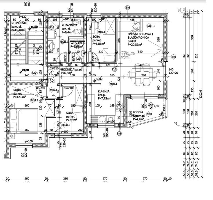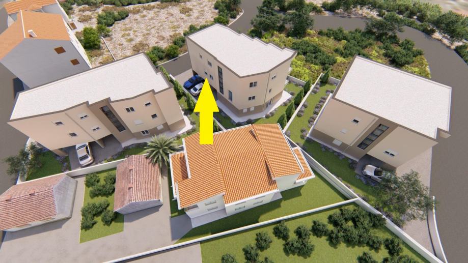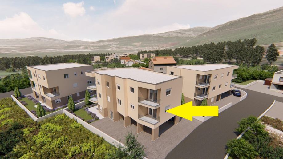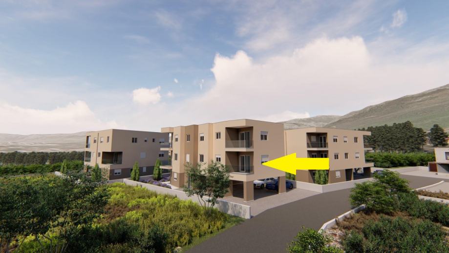 Trosoban komforan stan površine 77,35 m2, smješten na 01. katu manje zgrade s lođom i 2 natkrivena parking mjesta.