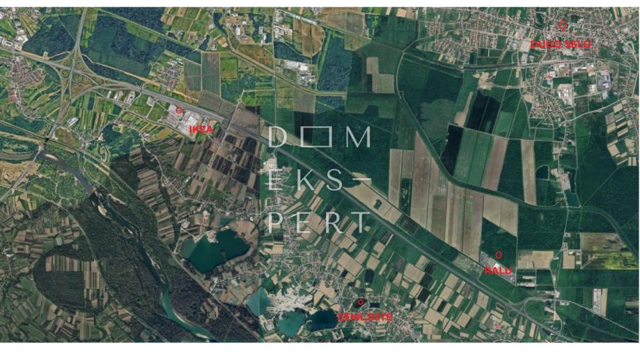 RUGVICA : Smješteno na izvrsnoj lokaciji, zemljište je udaljeno svega 6 km (9 min vožnje) od trgovačkog centra IKEA, a 10 km od centra Dugog Sela.