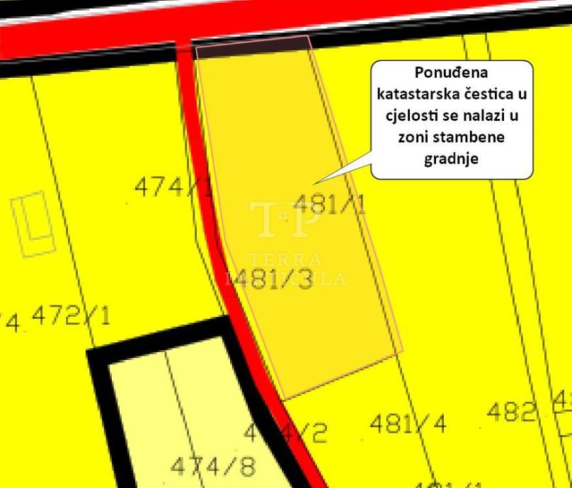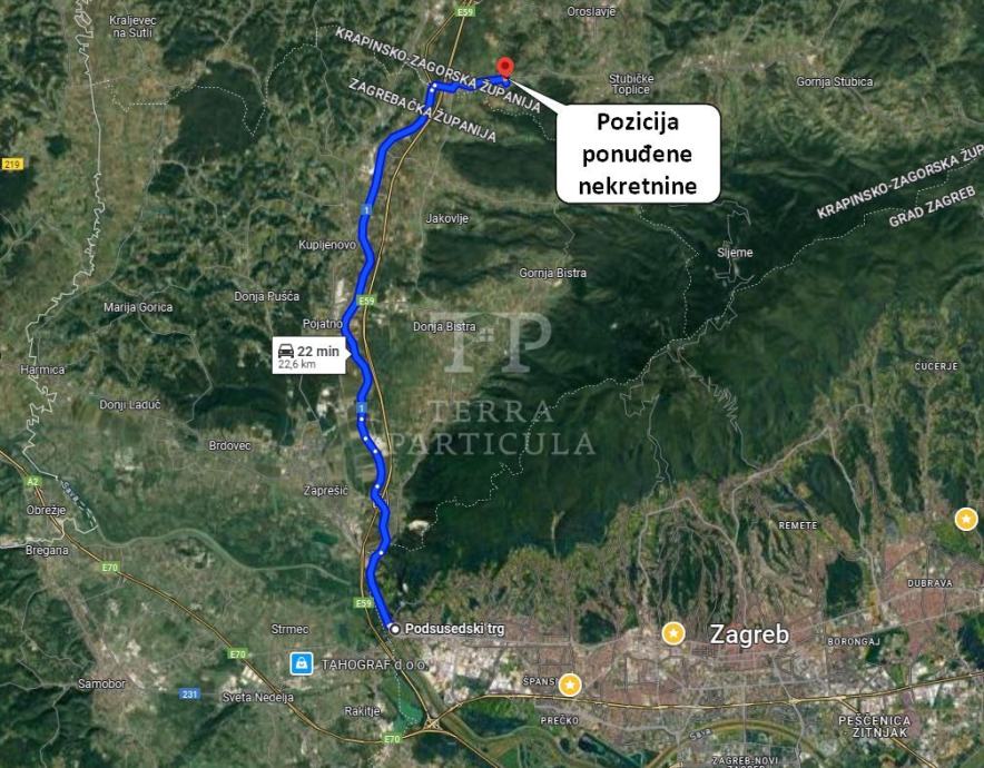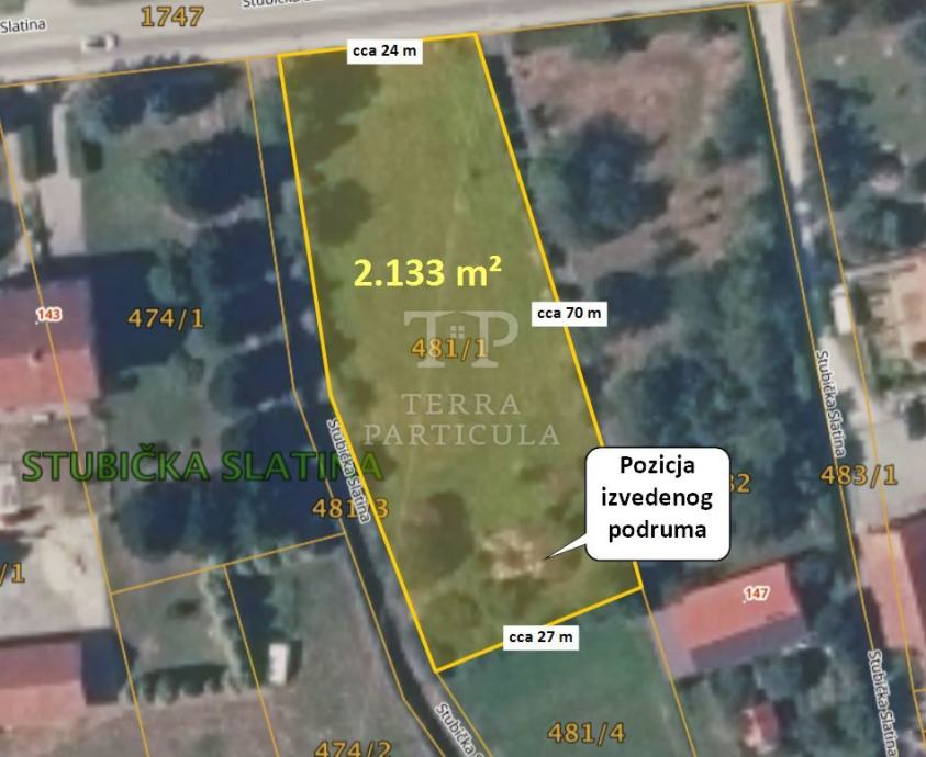 Sva infrastruktura nalazi se uz njega. Vlasništvo je čisto, 1/1 bez tereta. Nalazi se uz glavnu cestu između kuća na adresama Stubička Slatina 143 i 147. Oglasu su priloženi detalji iz projektne dokumentacije kuće kojoj je započeta gradnja.