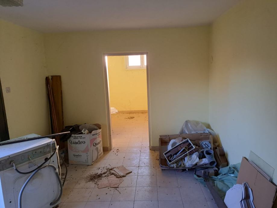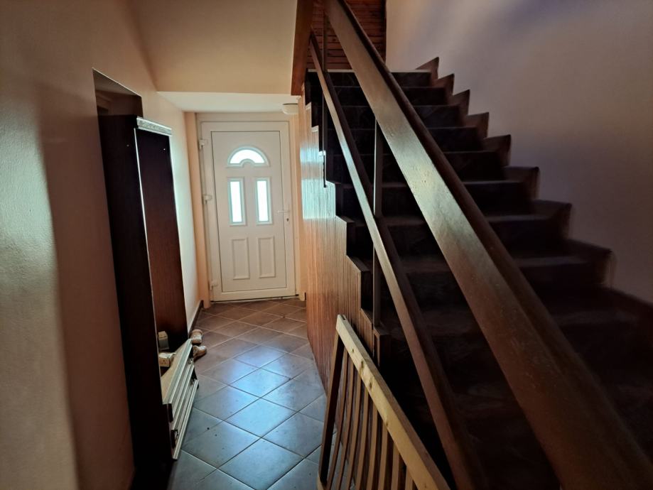 U prizemlju (ili prvom katu, iako kat ima ulaz bez stepenica) su tri sobe, kuhinja, kupaona sa wc-om, balkonom.