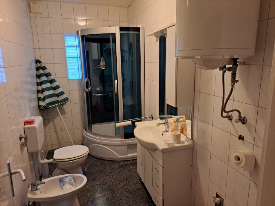 U prizemlju je dupla garaža, tehničke prostorije, vešeraj i kupaona sa wc-om. Postoje dva ulaza.