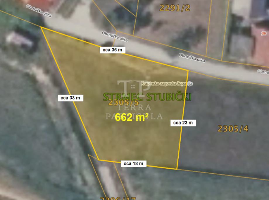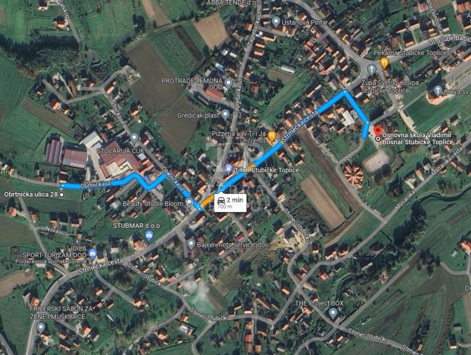Na prodaju nudimo građevinsko zemljište površine 662 m². Nalazi se u zoni stambene namjene, nasuprot kuće na adresi Obrtnička ulica 28, Stubičke Toplice. Svi priključci su uz njega.