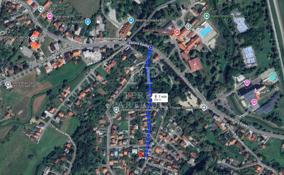 Na prodaju nudimo kuću (171,75 m² ) s dvije odvojene stambene jedinice i garažom za dva automobila, sve na okućnici od 726 m². Potrebno joj je obnova iako je i sada većim dijelom funkcionalna. Ima uporabnu te priključak plina, struje i vode. Nema tereta. Svaki stan se sastoji u prizemlju od dnevnog boravka s blagovaonom i kuhinjom i natkrivenom terasom dok su na katu u svakom po dvije spavaonice i kupaona. Od centra Stubaka udaljenost je 400 m. Okućnica ima dva prilaza. Parkirnih mjesta može biti desetak. Nalazi se na adresi Žrtava seljačke bune 24, Stubičke Toplice.