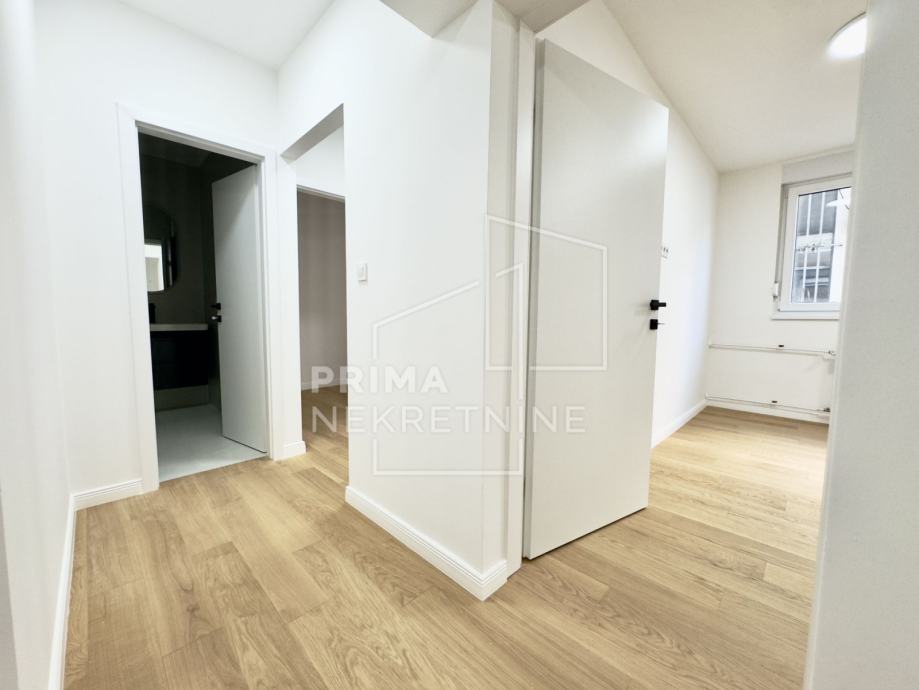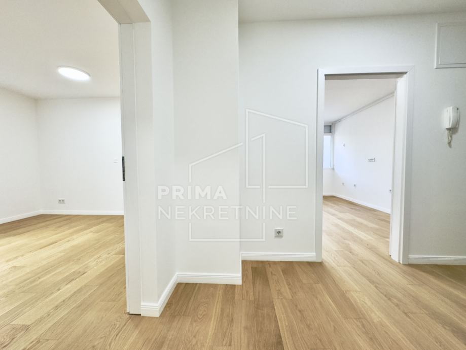 Stan je kompletno adaptiran; promijenjene su instalacije u cijelom stanu (struja i voda), postavljena nova protuprovalna vrata, troslojna PVC stolarija s komarnicima kao i sva nova sobna vrata. Postavljen je višeslojni parket sa širokim bijelim lajsnama, nova kupaonica i saniterije čime je zamijenjen doslovno svaki zamjenjivi segment u stanu.