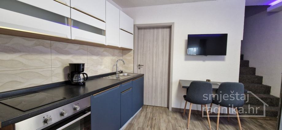 Smještaj se sastoji od opremljene kuhinje i dnevnog boravka sa kaučom na razvlačenje koji je ujedno i krevet za spavanje (na kauč je postavljen nadmadrac), te kupaonice.