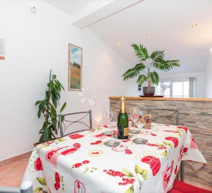 Ovaj funkcionalan prostor je potpuno namješten, pružajući sve što vam je potrebno za ugodan boravak. Uživajte u terasi s predivnim pogledom na more, idealnoj za opuštanje i uživanje u mirnoj atmosferi. Smješten na mirnoj lokaciji, ovaj apartman pruža osjećaj privatnosti i opuštanja, daleko od gradske vreve.