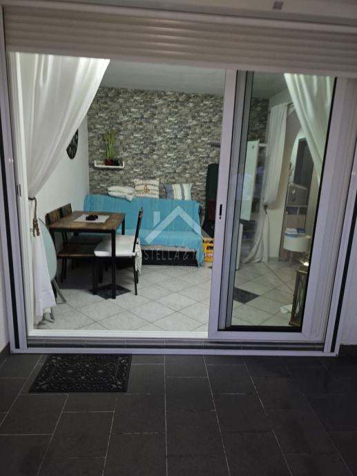 Površine je 26m2 , raspolaže sa sobom, kuhinjom i kupaonom. Također ima natkrivenu terasu. Pripada mu jedno parkirno mjesto.
