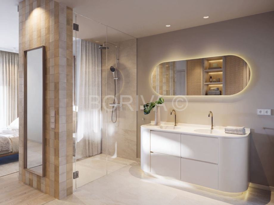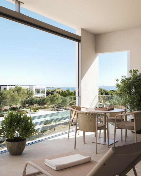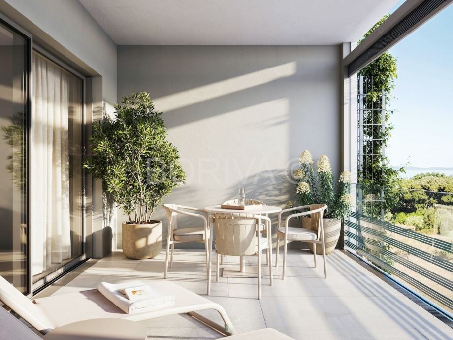 Prodaje se luxuzan, namješten, studio apartman na 1. katu sa balkonom, novogradnja, prvi red uz more!