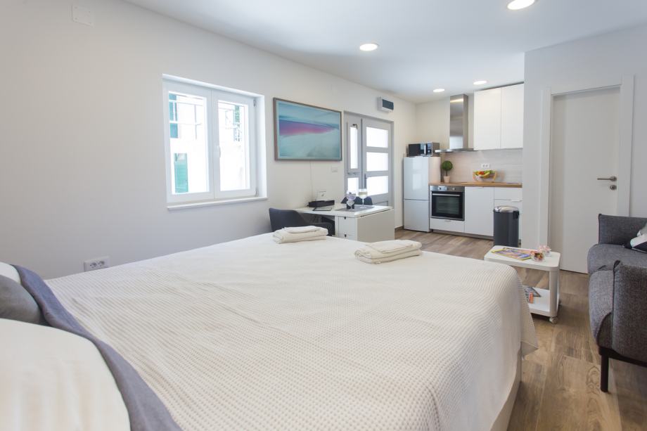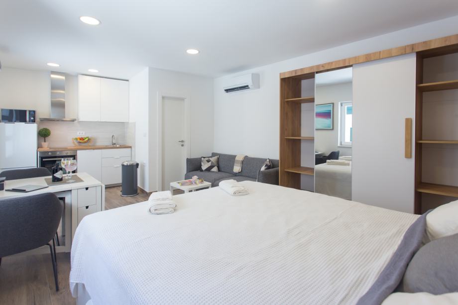 Studio je udaljen nekoliko minuta hoda od plaže, šetnice, trgovina, kafića, sportskih sadržaja, bazena, autobusne stanice, stanice gradskih bicikala...