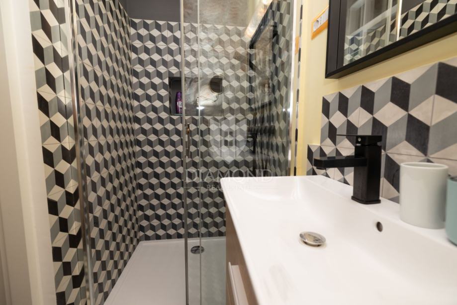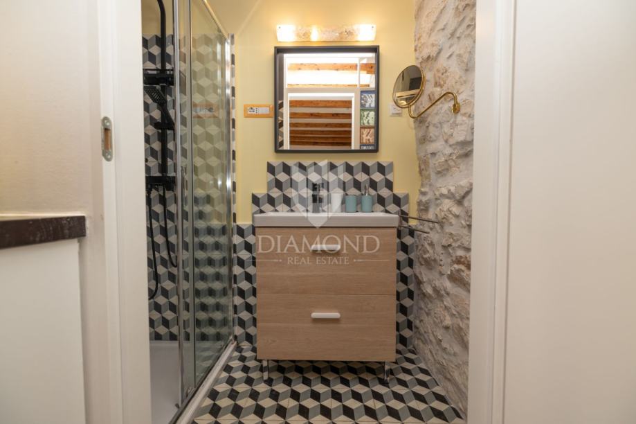 Sređen je s puno pažnje na detalje i opremljen kvalitetnim namještajem po mjeri modernog dizajna, a odlikuje ga odlična orijentacija. U kupaonici je postavljeno podno grijanje na struju, a stan ima i odvojen WC, što dodatno doprinosi komforu. Stan se posljednjih godina koristi u turističke svrhe i ostvaruje izvrsne rezultate, s prosječnom ocjenom 9,5 na Bookingu – potvrda kvalitete i zadovoljstva gostiju. Dodatno, većina stanova u zgradi koristi se za turistički najam, što olakšava buduću kategorizaciju i daljnje poslovanje. Dokumentacija je u potpunosti uredna i potvrđuje legalnost objekta.