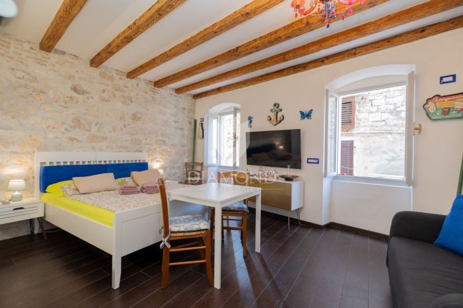 Studio sa spremištem, centar Rovinja, pogled na more (prodaja)