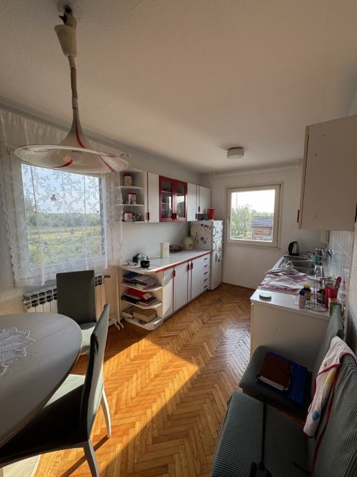 Kat: Kuhinja i dnevni boravak s balkonom, 2 spavaće sobe (jedna s izlazom na balkon), kupaonica i odvojeni WC