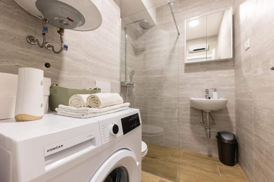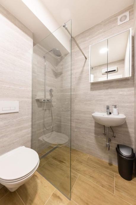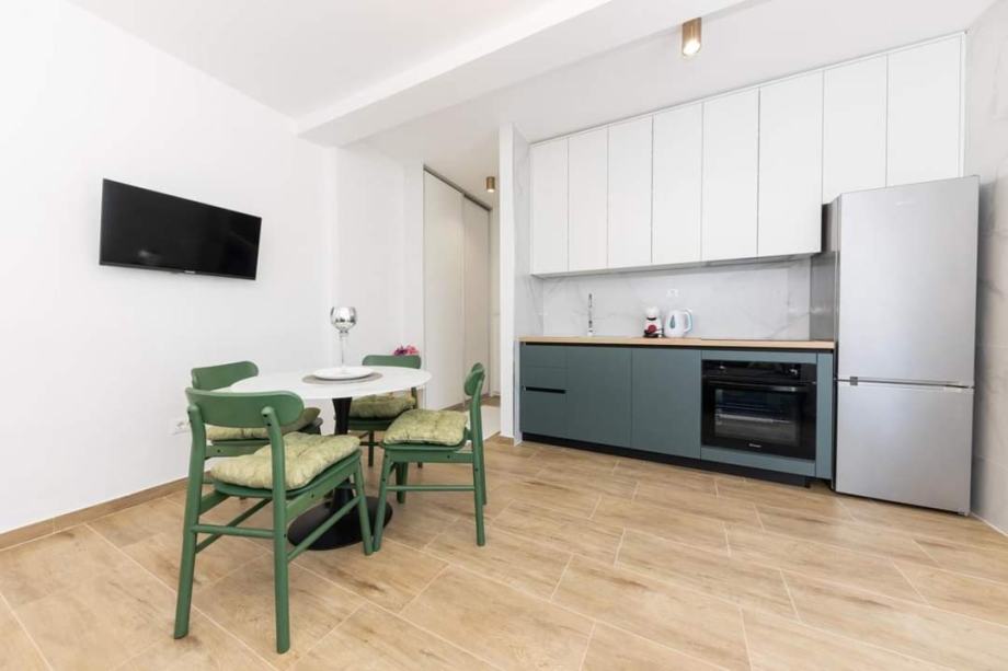 Iznajmljujemo novo renovirani jednosobni stan smješten u manjoj zgradi. Sastoji se od kuhinje s blagovaonicom i dnevnim boravkom, spavaće sobe, kupatila i manje terase.