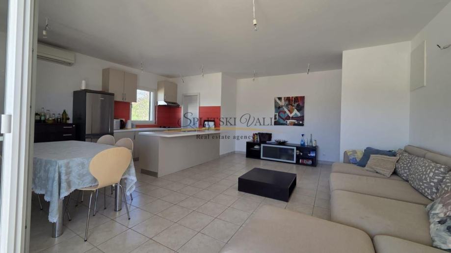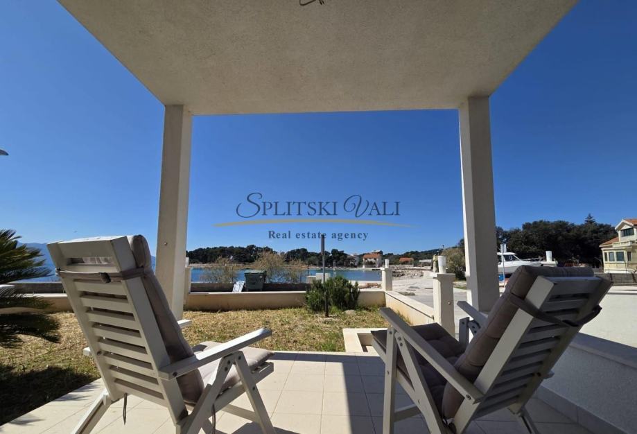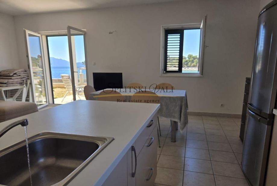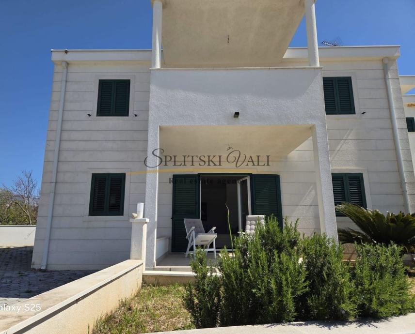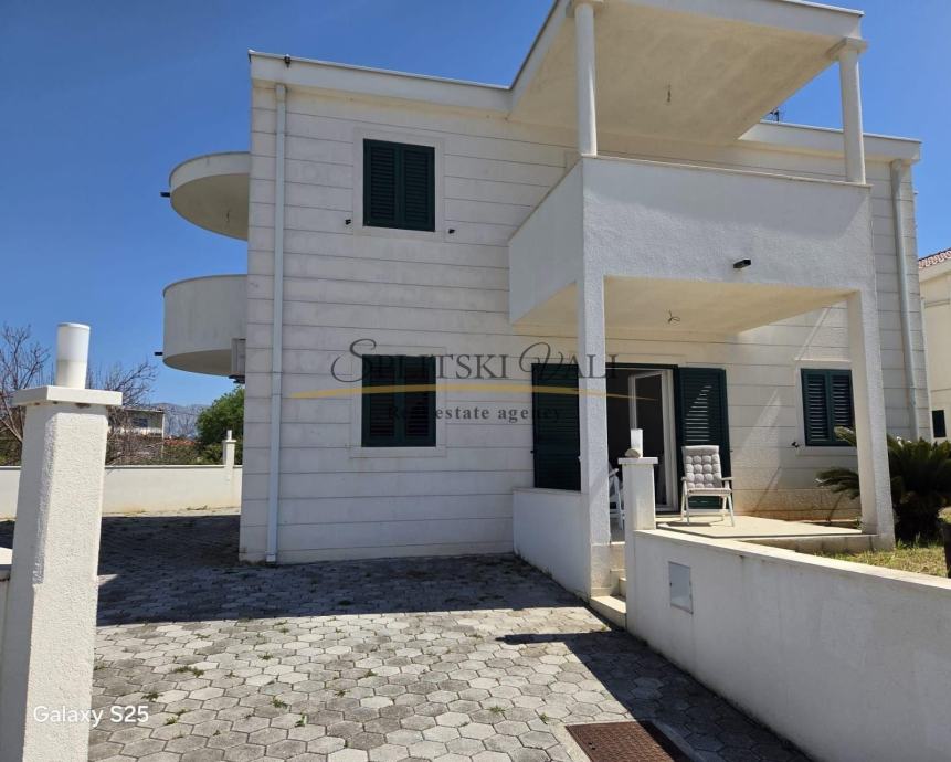 Nekretnina se proteže na dvije etaže koje su odvojene ulazom. Na prizemlju se nalazi prostrani dnevni boravak sa kuhinjom i blagovaonicom,ostava, gostinjski WC, gospodarska prostorija odnosno praonica, te tri spavaće sobe svaka sa svojom kupaonicom. Iz dnevnog boravka se izlazi na trijem koji je okružen mediteranskom vegetacijom i pruža neometan pogled na more i obalu. Sa stražnje strane kuće nalazi se prostrani vrt u kojem možete napraviti bazen ili/i vanjsku kuhinju. Na gornjoj etaži smještena su još tri apartmana, također svaki sa svojom kupanicom i terasom odnosno loggiom sa pogledom.