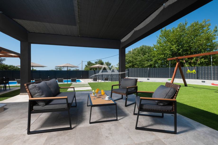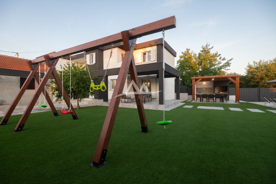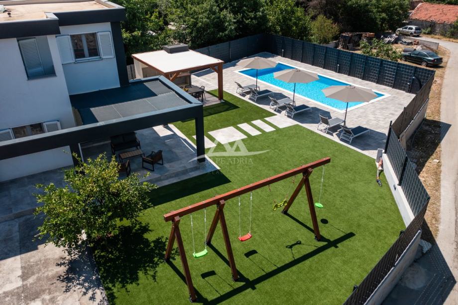 - Dvorište (220 m2) – vanjski gril, terasa sa nadstrešnicom parking, dječje igralište