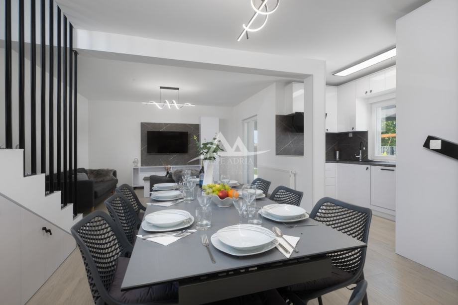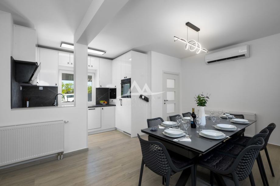 - Prizemlje: ulazno predsoblje, prostrana kuhinja s blagovaonicom i dnevnim boravkom i toalet