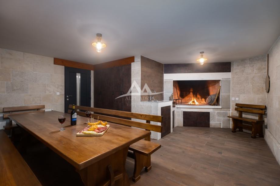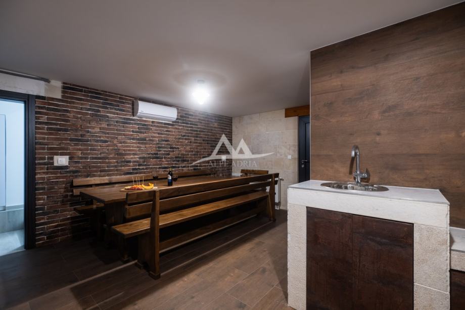 Smještena između starog i novog dijela, s natkrivenim vanjskim ulazom – idealno za pripremu tradicionalnih jela, druženje ili kao ljetna kuhinja
