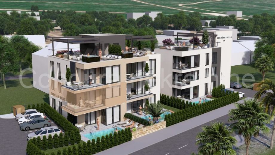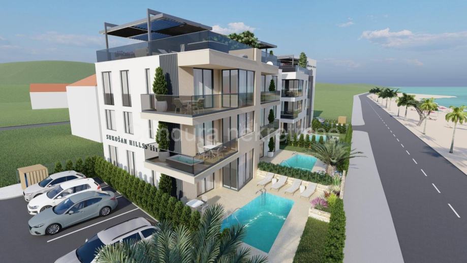 Sukošan - luksuzna novogradnja, apartman na 1. katu s lođom, 1. red do mora. Nalazi se u objektu s ukupno 6 apartmana, a objekt ima i lift.