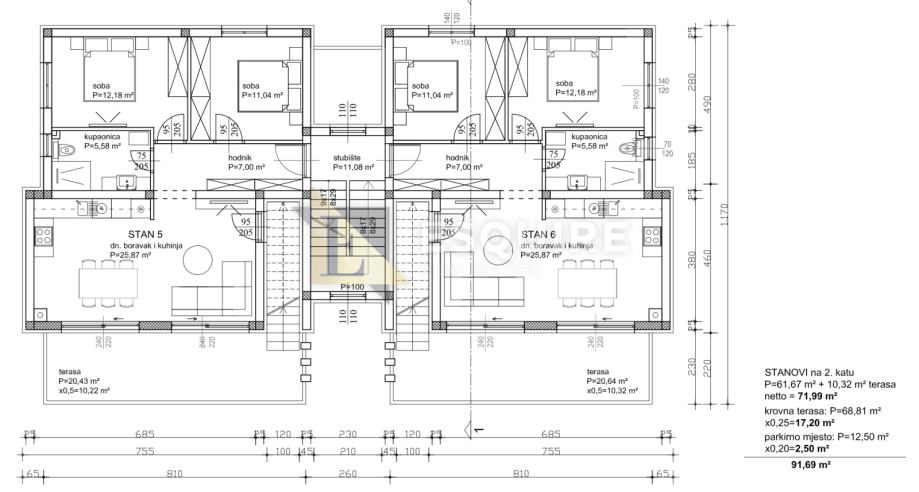 S5 i S6 - 91,69 m2 (Krovna terasa 68,81, koeficijent 0,25) - 320.915 €