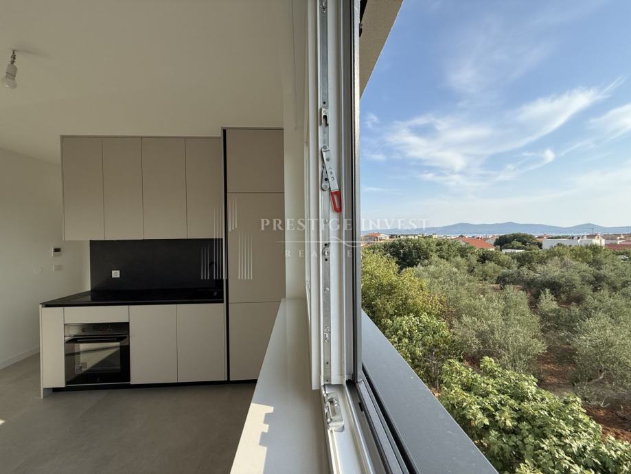 S krovne terase (od 51m2) se pruža prekrasan pogled na more i Sukošan do koje se dolazi unutarnjim stepenicama s lođe stana.