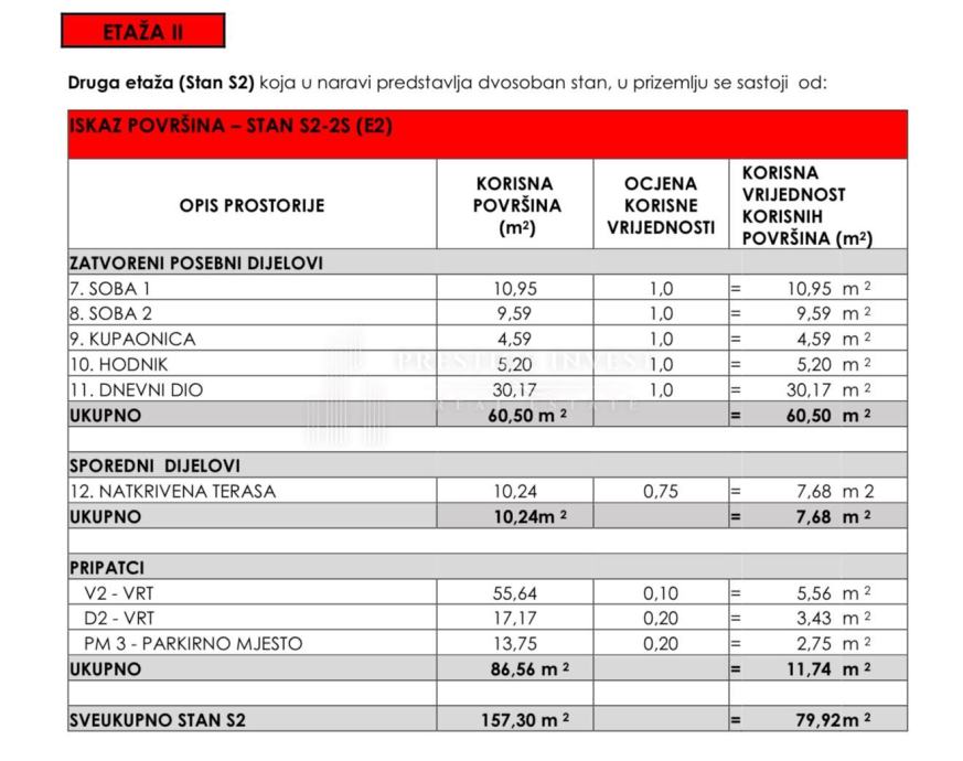 Ukupna obračunska korisna površina: 79,92 m²