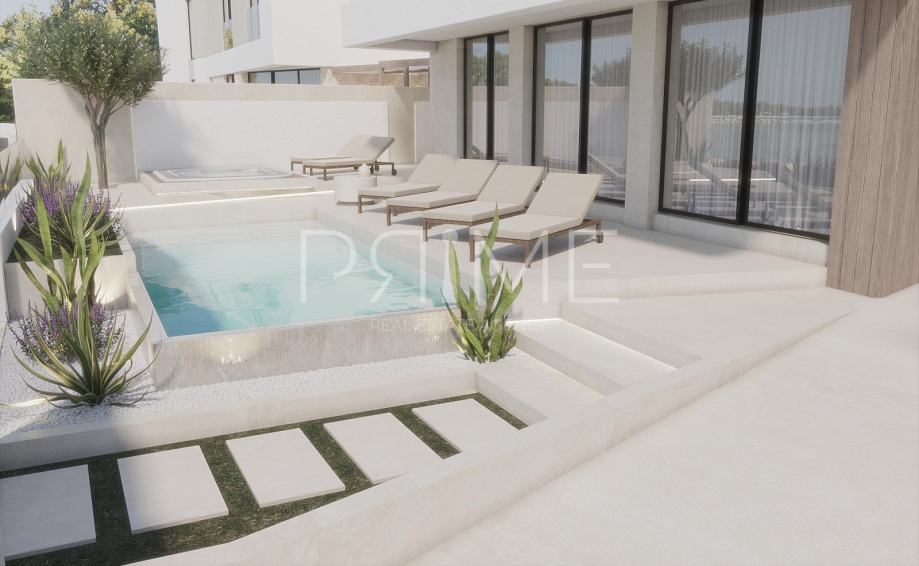 Luksuzna vila površine 276 m2 nalazi se na parceli površine 333 m2. Nalazi se na jedinstvenoj lokacij u prvome redu do mora, iz dvorišta se izlazi direktno na plažu. Sastoji se od tri etaže prizemlja, prvoga i drugog kata. U prizemlju se nalaze kuhinja, blagovaona, dnevni boravak, wc, vešeraj, strojarnica i natkrivena terasa. Na prvome katu se nalaze tri spavaće sobe s vlastitim kupaonicama i natkrivena terasa dok se na drugome katu nalaze spavaće soba s vlastitim kuponicom, teretana, spremište i natkrivena terasa. Vila ima vanjski grijani bazen, jacuzzi, projektiran je da zadovolji standarde 5* (u slučaju da se budući vlasnik želi baviti turizmom). Prodaje se djelomično namještena i opremljena(sa kuhinjom, ugradbenim ormarima u hodniku, kupatilima i spavacim sobama, grijanje i hladjenje putem dizalice topline, bazen grijan sa toplotnom dizalicom, talijanska keramika u velikim formatima, podno električno grijanje, troslojna alu stolarija....) Iz svih prostorija se pruža prekrasan pogled na more. Završetak sih radova i useljenje je planiranu do 01.11.2025 godine. Više informacija na upit.