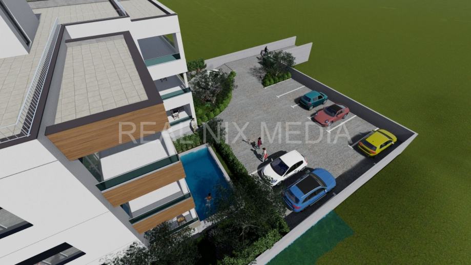 STAN S01 - stambene površine 111,20 m2 (+ 20 m2 terase ) nalazi se u prizemlju zgrade. Sastoji se od kuhinje, blagovaonice i velikog dnevnog boravka iz kojeg se izlazi na prostranu sunčanu terasu, predsoblja, kupaonice sa wc-om, toaleta za goste i tri komforne spavaće sobe od koje jedna sa vlastitom kupaonicom. Stanu pripadaju 2 vanjska parkirna mjesta, 1 garažno parkirno mjesto i prostrani vrt sa bazenom . Ukupna tlocrtna površina stana sa pripatcima iznosi 330,32 m2 ( obračunski po koeficijentima 160,61 m2) . Cijena stana: 742.700,00 EUR-a STAN S02 - stambene površine 91,1 m2 ( + terasa 22 m2) nalazi se u prizemlju zgrade. Sastoji se od kuhinje, blagovaonice i dnevnog boravka iz kojeg se izlazi na prostranu terase te sa koje se pruža POGLED NA MORE! Predsoblje, gostinjski wc, odvojeni spavaći dio u kojem se nalaze dvije komforne spavaće sobe i kupaonica sa wc-om. Stanu pripada 1 vanjsko parkirno mjesto, 1 garažno parkirno mjesto i vrt 146 m2. Ukupna tlocrtna površina stana sa pripadcima iznosi 284,11 m2. ( obračunski po koeficijentima 125,48 m2) Cijena stana: 570.000,00 EUR-a. STAN S03 - stambene površine 111,20 m2 ( + 20 m2 terase ) nalazi se na prvom katu zgrade. Sastoji se od kuhinje, blagovaonice i velikog dnevnog boravka iz kojeg se izlazi na sunčanu terasu, predsoblja, toaleta za goste, kupaonice sa wc-om i tri komforne spavaće sobe od koje jedna sa vlastitom kupaonicom. Stanu pripada 1 vanjsko parkirno mjesto i 1 garažno parkirno mjesto. Ukupna tlocrtna površina stana sa pripatcima iznosi 155,76 m2 ( obračunato po koeficijentima 143,62 m2) m2. Cijena stana: 616.000,00 EUR-a. STAN S04 - stambene površine 91,10 m2 ( + terasa 22 m2) nalazi se na prvom katu zgrade. Sastoji se od kuhinje, blagovaonice i dnevnog boravka iz kojeg se izlazi na balkon sa kojeg se pruža POGLED NA MORE! Predsoblje, gostinjski wc, odvojeni spavaći dio u kojem se nalaze dvije komforne spavaće sobe i kupaonica sa wc-om. Stanu pripada 1 vanjsko parkirno mjesto, 1 garažno parkirno mjesto i vrt (nije uračunato u površinu stana). Ukupna tlocrtna površina stana sa pripadcima iznosi 138,23 m2 ( obračunato po koeficijentima 110,9 m2). Cijena stana: 528.000,00 EUR-a. PENTHOUSE S05 - stambene površine 111,20 m2 nalazi se na drugom katu zgrade. Sastoji se od kuhinje, blagovaonice i dnevnog boravka iz kojeg se izlazi na prostranu terase, predsoblje, gostinjski wc, kupaonica sa wc-om, tri komforne spavaće sobe od koje jedna sa vlastitom kupaonicom. Iz stana pruža se prekrasan pogled na more i otoke! Stanu pripada krovna terasa kojoj se prilazi modernim spiralnim stepenicama. Pripadci stanu: 2 vanjskoa parkirna mjesta, 1 garažno parkirno mjesto .Ukupna tlocrtna površina stana sa pripadcima iznosi 308,21 m2 ( po koeficijentima 172,00 m2.) Cijena: 800.000,00EUR-a. PRODANO - PENTHOUSE S06 - nalazi se na drugom katu zgrade sa prekrasnim otvorenim POGLEDOM NA MORE I OTOKE. Sastoji se od kuhinje, blagovaonice i dnevnog boravka sa izlazom na prostran balkon, predsoblje, gostinjski wc, odvojeni spavaći dio u kojem se nalaze dvije komforne spavaće sobe i kupaonica sa wc-om. Stanu pripada krovna terasa kojoj se prilazi modernim spiralnim stepenicama. Pripadci stanu: 1 vanjsko parkirno mjesto, 1 garažno parkirno mjesto (nije uračunato u površinu stana).Ukupna tlocrtna površina stana sa pripadcima iznosi 233,88 m2 ( po koeficijentima 134,78 m2).. Cijena stana iznosi 635.000,00 EUR-a.