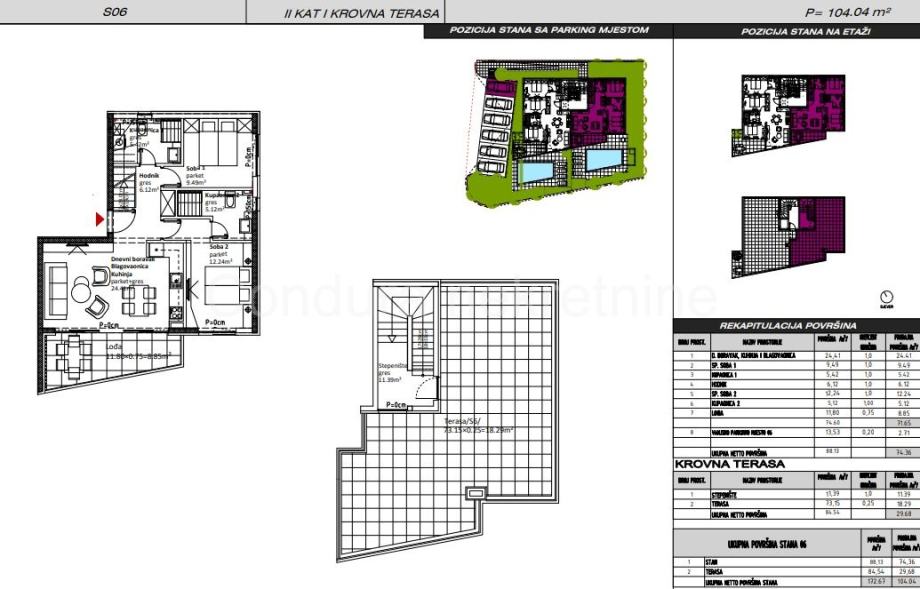Ukupna neto površina stana sa svim pripadcima iznosi 88,01 m².