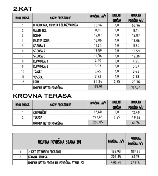 Ukupno stambeni prostor iznosi 405,78 m2.