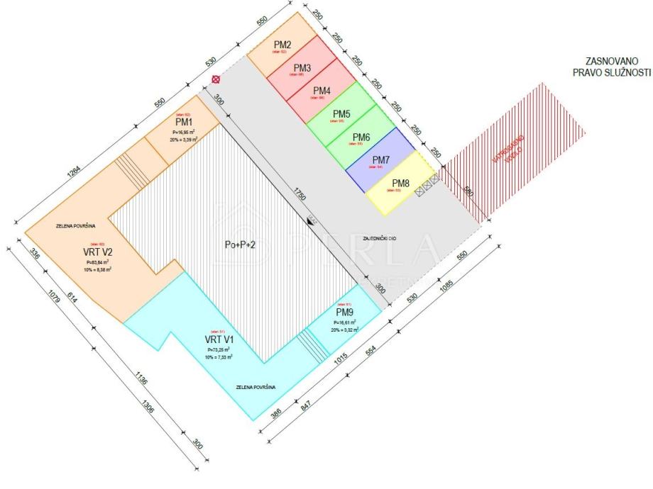 - Vrt (83,84 m², netto površine 8,38 m²).